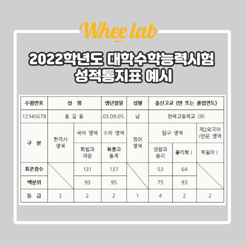 2022학년도 수능 성적표 통지일은 12월 10일로 성적표에서 국어, 수학, 탐구는 상대평가