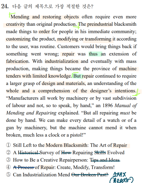 -> 아! 물건을 고친다는 것은 커스토마이징, 수정, 변형처럼 창의성이 필요한가봐!