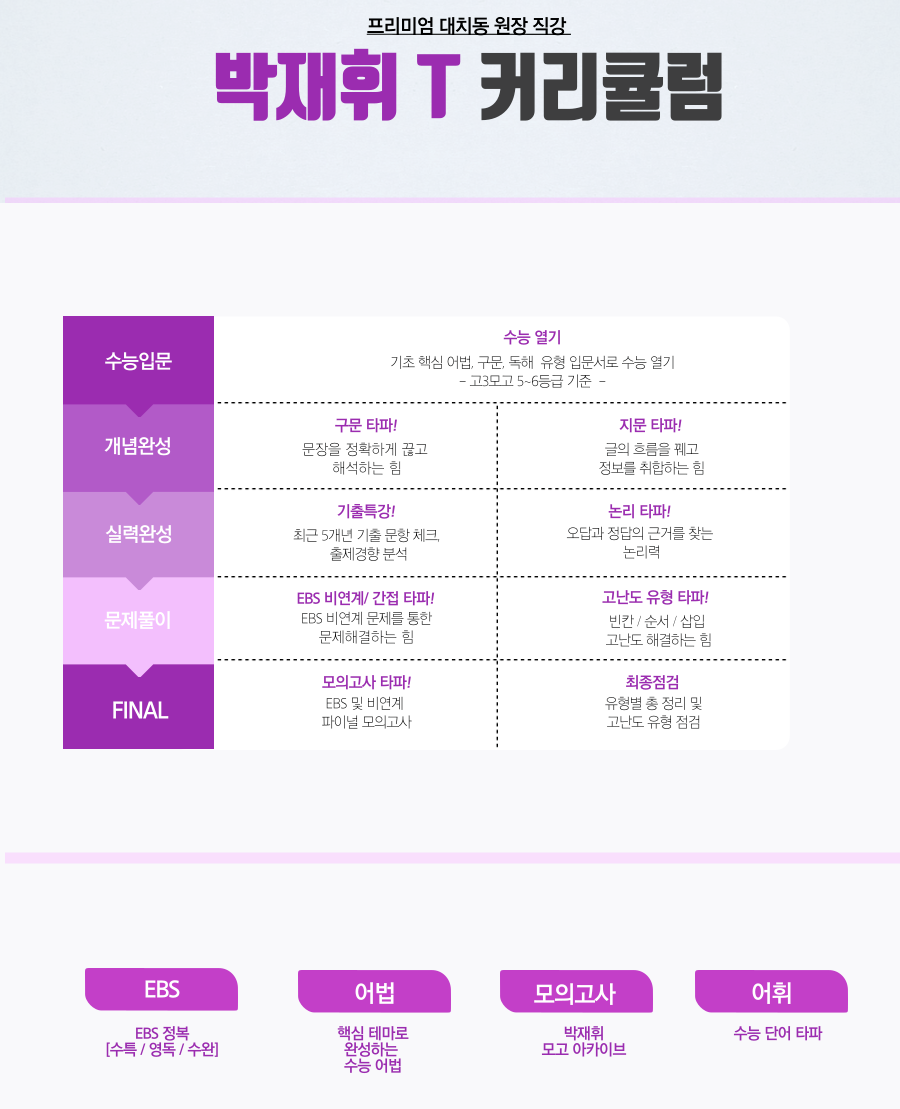 단어, 구문독해, 문법, 독해 자체 교재 완비