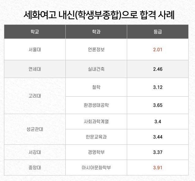 대치독재 대입컨설팅 휘쌤만의 세화여고 관리는