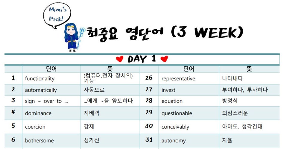 하루 50개의 단어는 자주 출제되는 단어들로 구성이 되어있기 때문에