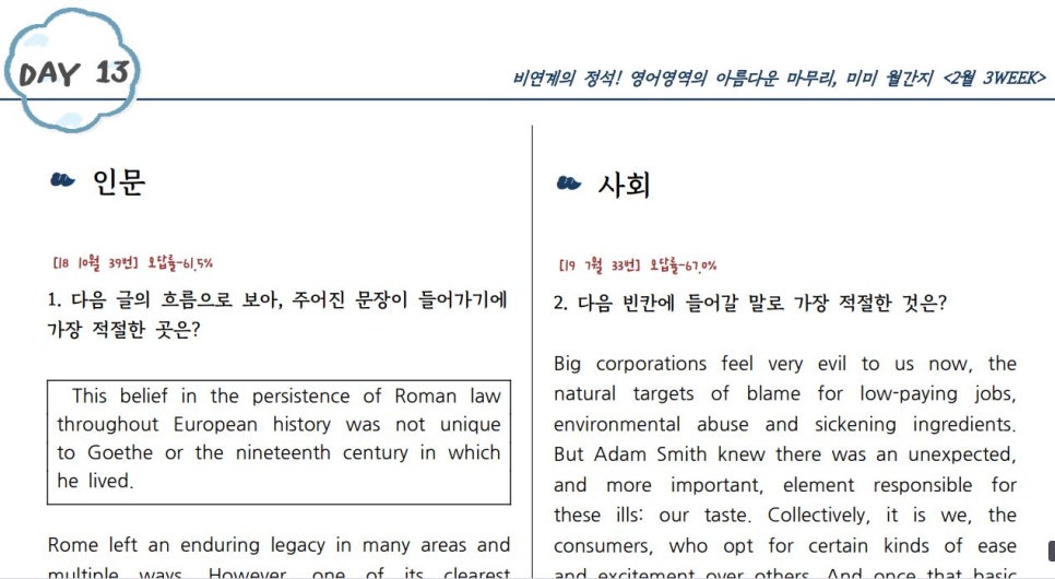 매 주차에 오답률이 50% 이상인 지문들도 넣어놓기 때문에
