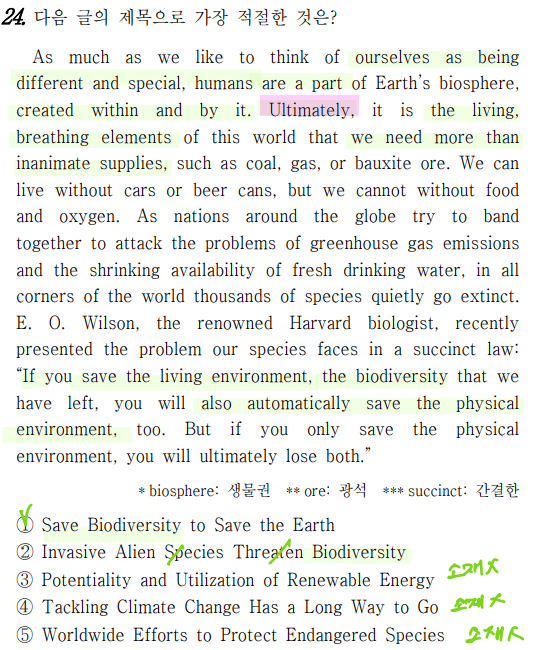 <2022학년도 고3 서울시 학평 영어> 20번,22번,23번,24번 ★대의파악(주제,제목,주장,요지)★ 분석, 해설, 손글씨, 정답