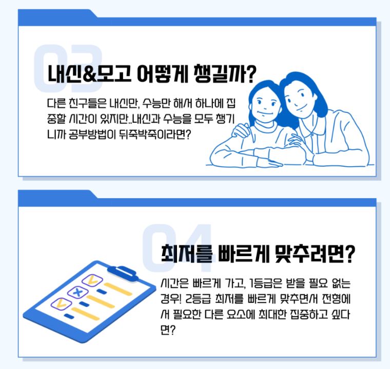 이제는 더 나아가 학생, 학부모님께 새로운 입시 전략을 위해