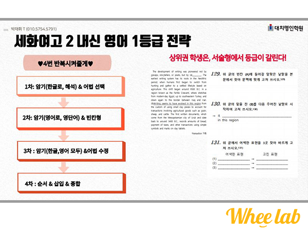대치 명인 학원 휘쌤의 영어 강의로 모의고사, 내신 모두 챙길 수 있도록