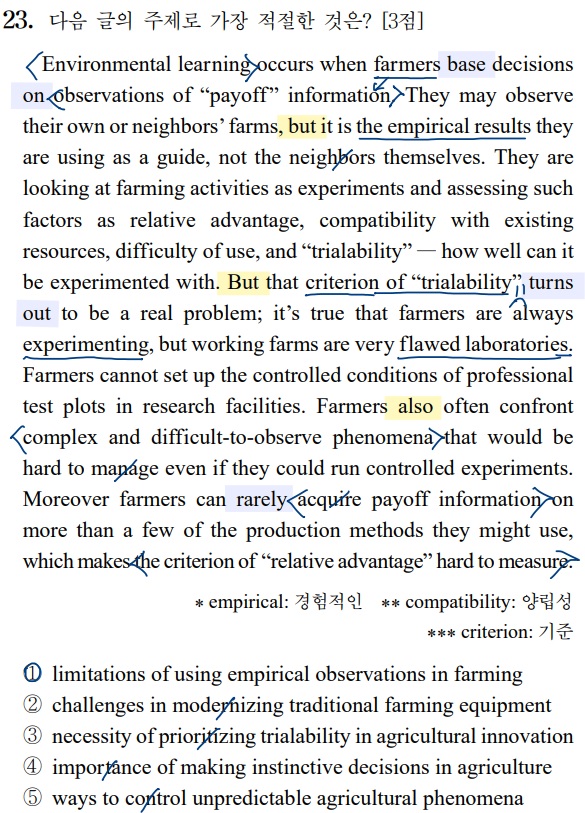 2023학년도(2022) 9월 고3 모의고사 영어 대의파악 주제★23번★ 해설, 손글씨(+문제 답지 첨부)[휘랩연구소 박재휘]