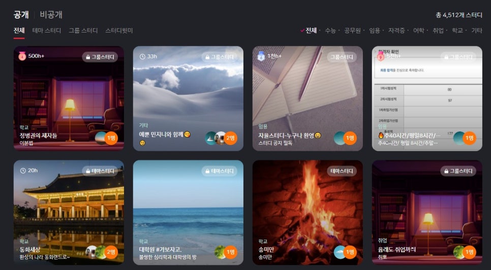 본인이 자유롭게 스터디를 만들 수도 있으면서