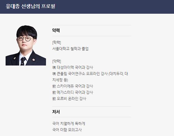 오늘 소개해 드릴 선생님은 대성마이맥의 국어 유대종 선생님이에요
