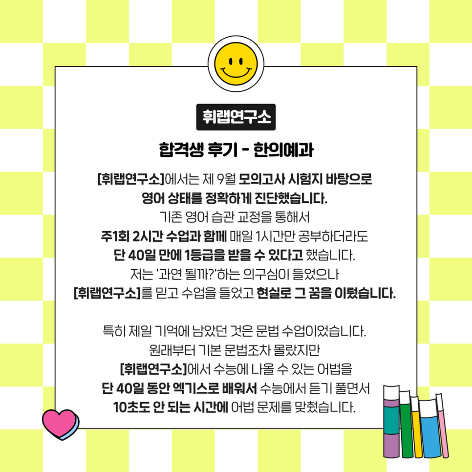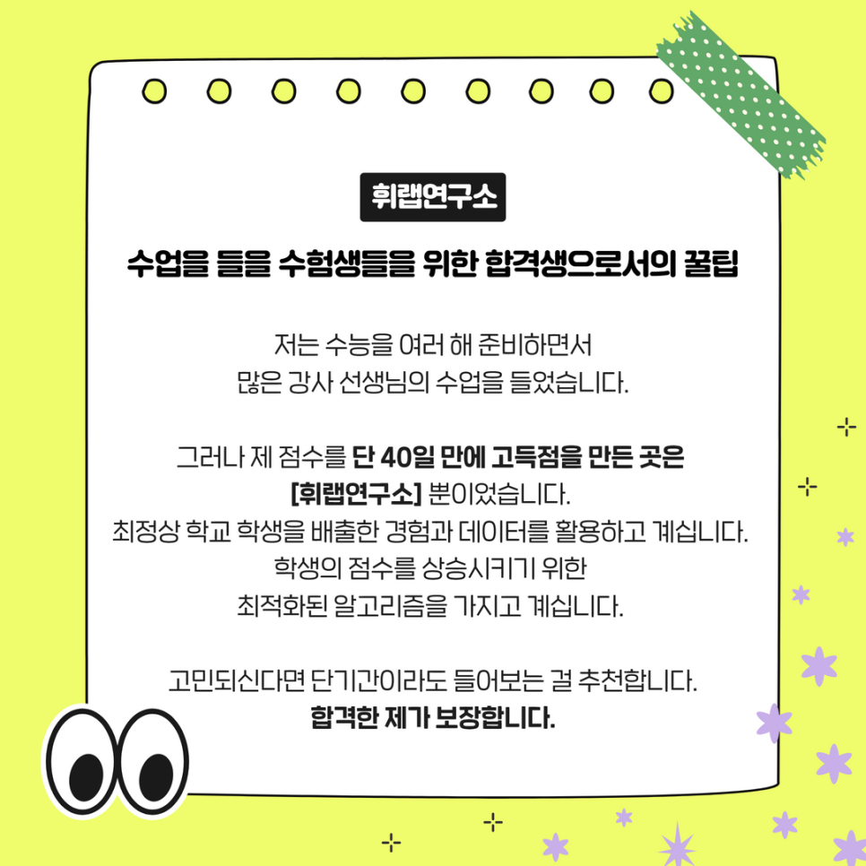여러분들의 성공적인 입시를 위해서 휘랩지원팀에서도