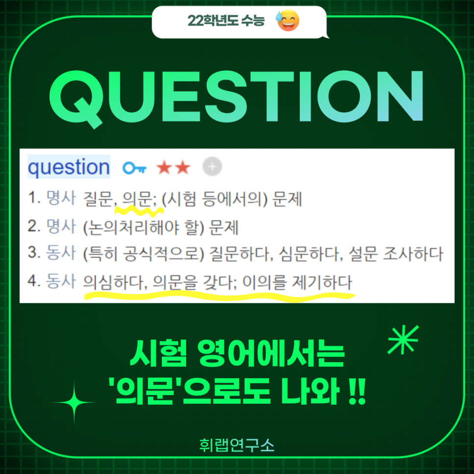 [필수 입시 수능 어휘] 'Question' 뜻, 예문, 기출 <대치영어 박재휘쌤>