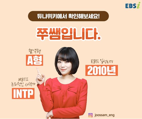 오늘은 EBSi와 이투스에서 영어 영역을 맡고 있는 쭈쌤을 소개해 드릴게요!