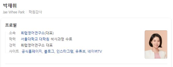 [휘랩연구소] 대치동영어학원 대치명인학원 박재휘 강사 네이버 인물정보 등재 (강남/대치수능영어,국어,수학학원 추천)