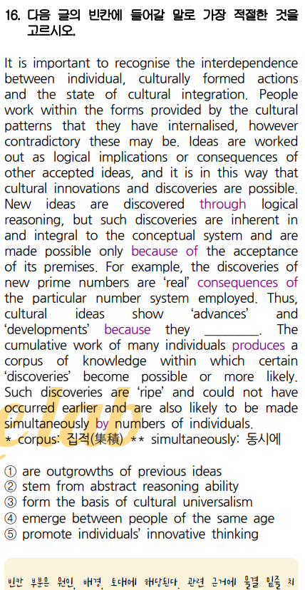 휘랩연구소 교재에서 빈칸 유형 중 제일 처음 학생들에게 가르치는 지문과 일치했습니다.