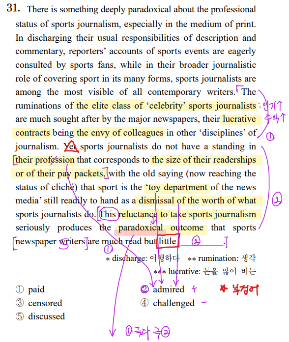 (5) little discussed => 지금 지문에 나온 것만으로도 반례(=스포츠 저널에 대해서 회자되고 있으므로)