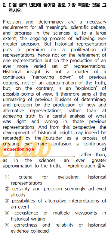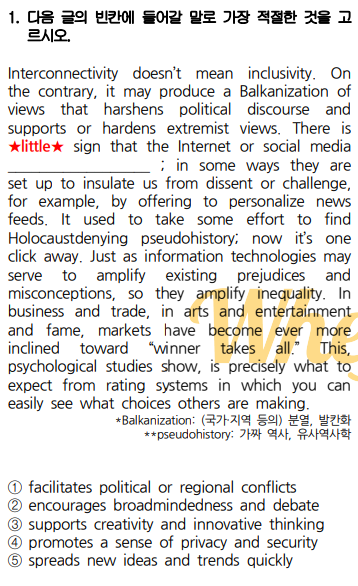 쉽게 나왔을 때는 빈칸에 관련된 근거 반복을 2번