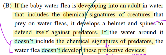 (B) 아기 flea가 chemical signatures가 있는 물에서 어른이 될 때, 적을 방어하고자 돌기 만든다.