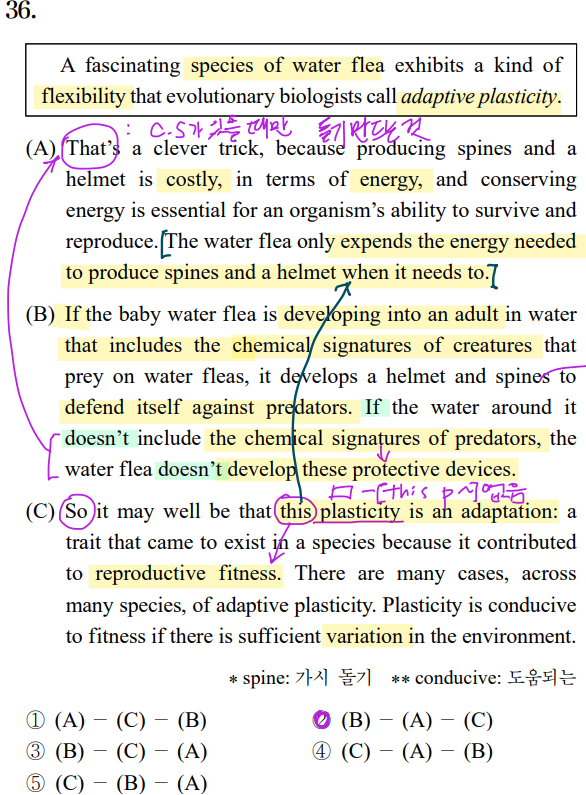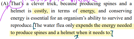 네모칸 (water fleas는 유연성(=adaptive plasticity)보여준다)과 (A)가 연결될까? -> NO. 갑자기 돌기만드는 건 비싸다..? |