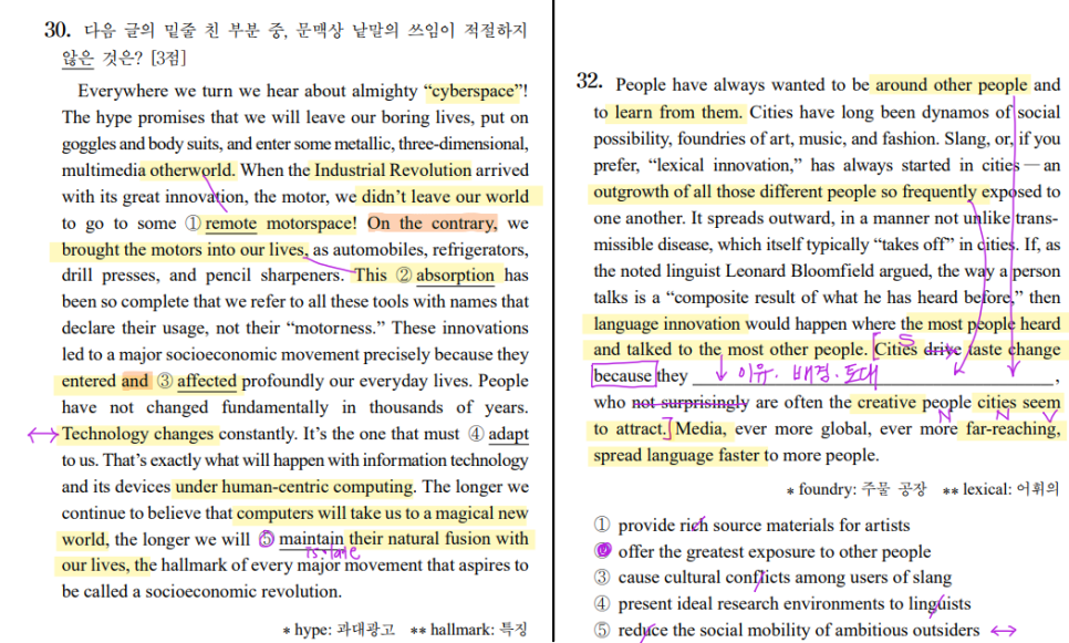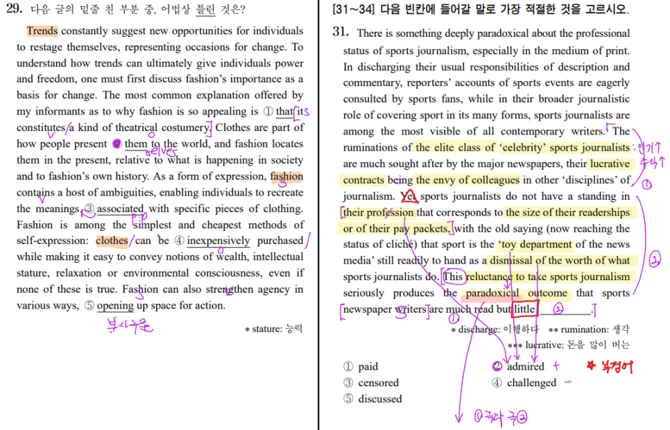 2023 수능 빈칸 31번, 32번 분석, 총평, 손글씨, 해설