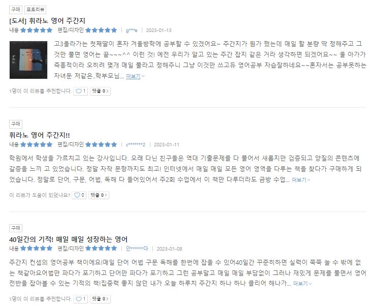 후기가 증명하는 휘랩영어연구소 영어 주간지 휘간지로
