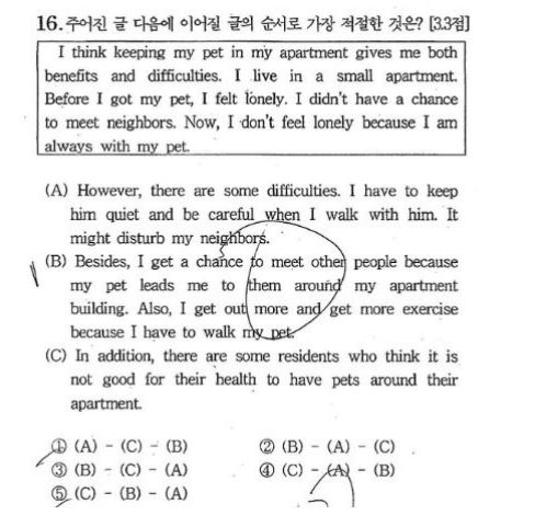 수능에서 볼 수 있는 순서 맞추기 유형과 동일해요
