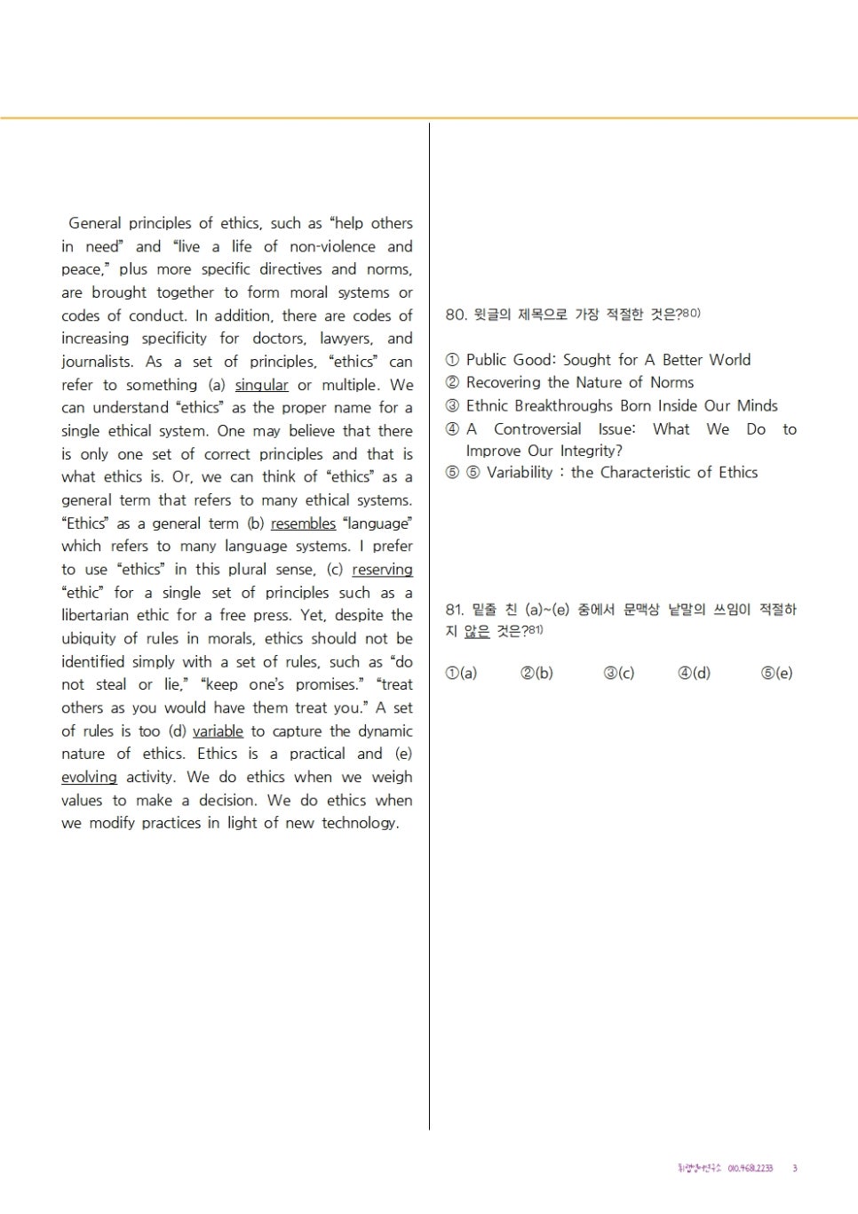 어디에서도 구할 수 없는 문항들이기 때문에