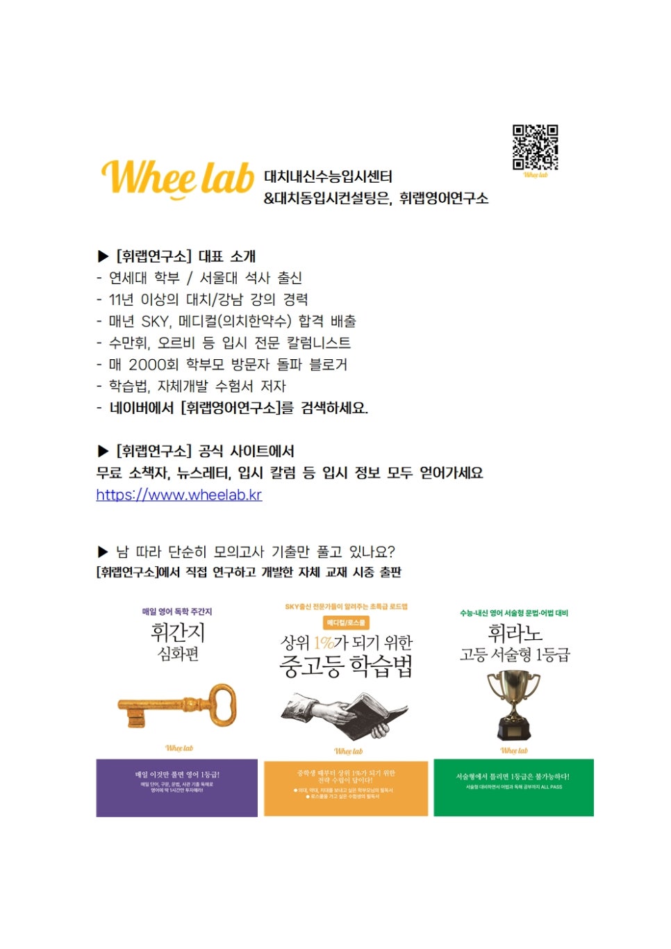 대치수능영어센터 & 대치입시컨설팅 <휘랩연구소>입니다.