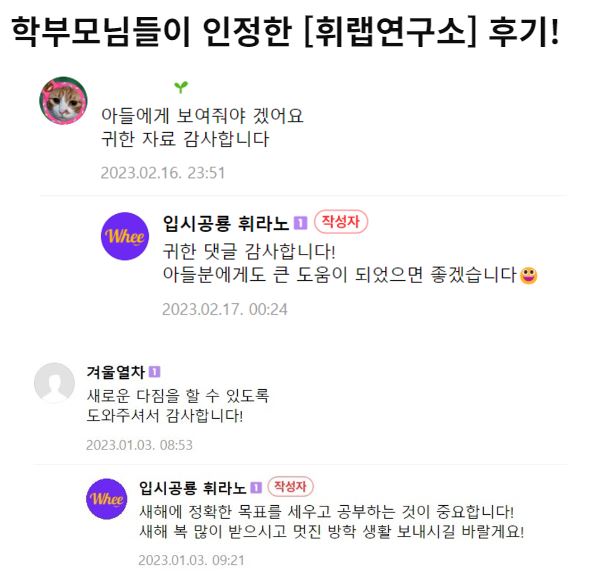 이 외에도 무수히 많은 [휘랩연구소]만의 입시 칼럼이