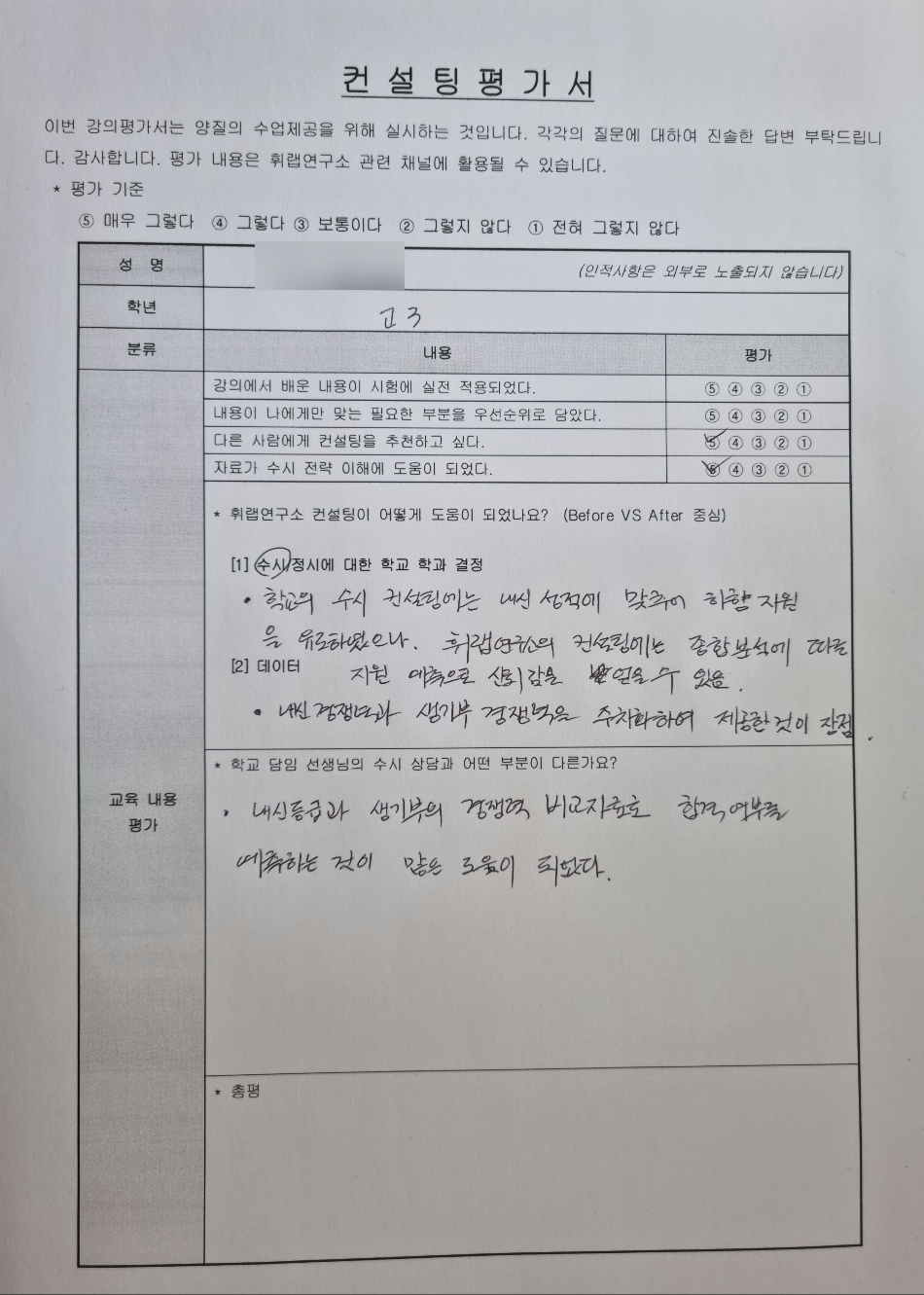 재수를 피할 수 있는 맞춤식 전략으로 컨설팅을 진행했어요