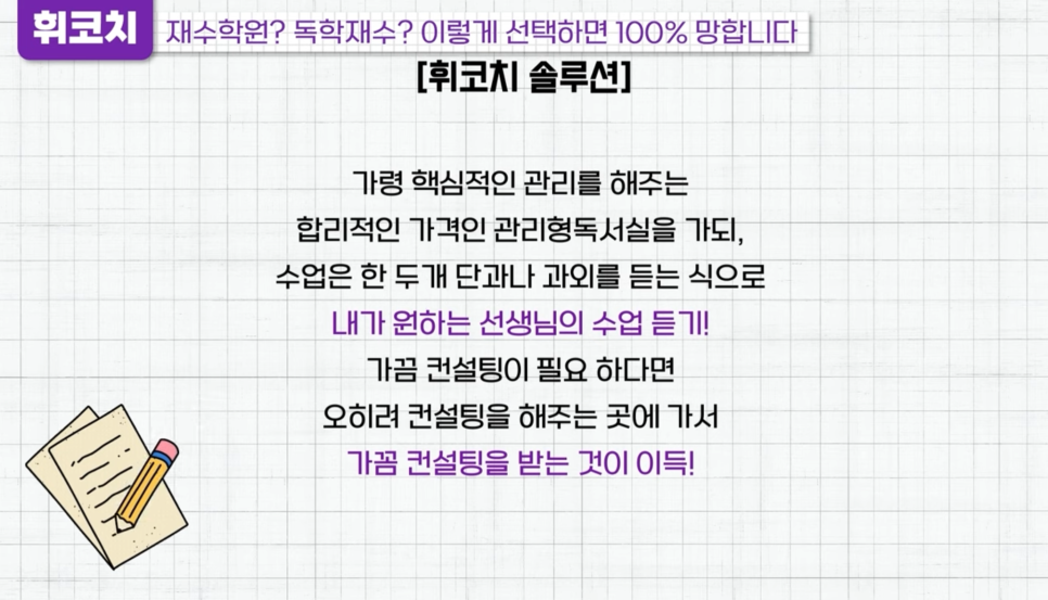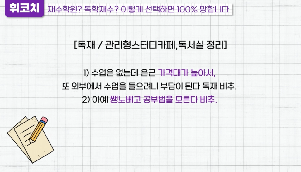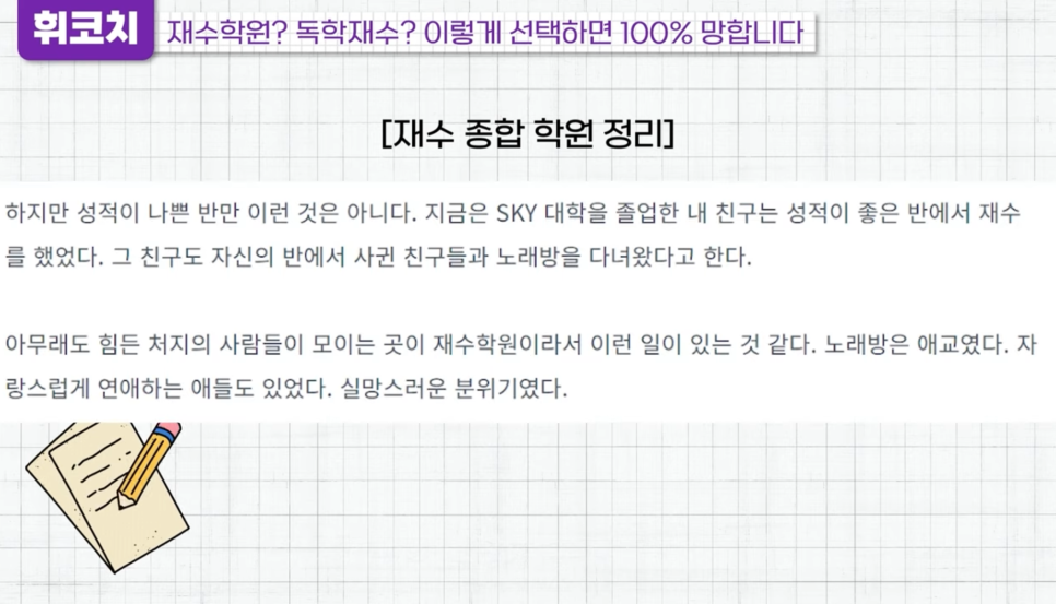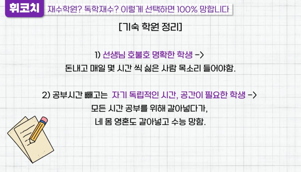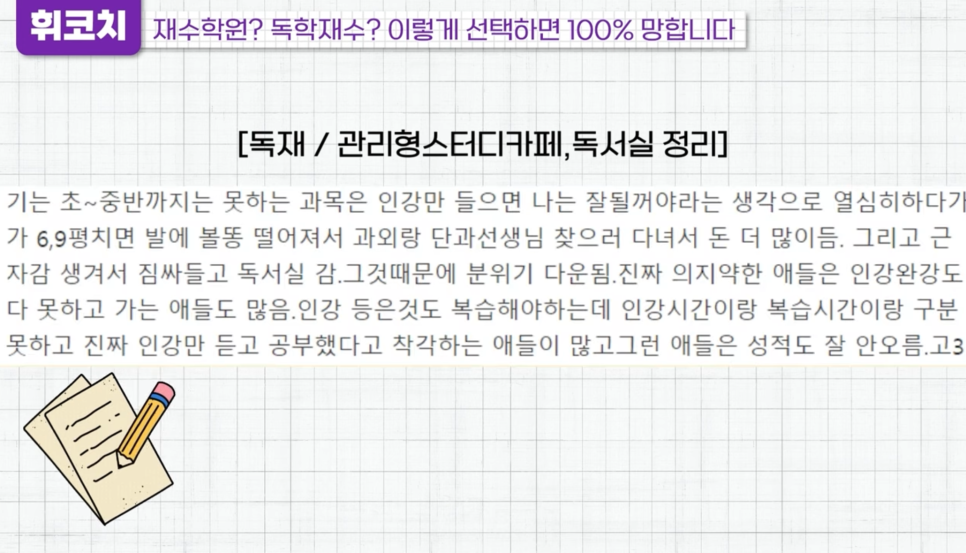대치동 독학재수센터 실제 경험담의 독학재수/재수학원 선택 TIP! (+휘코치의공부팩폭)
