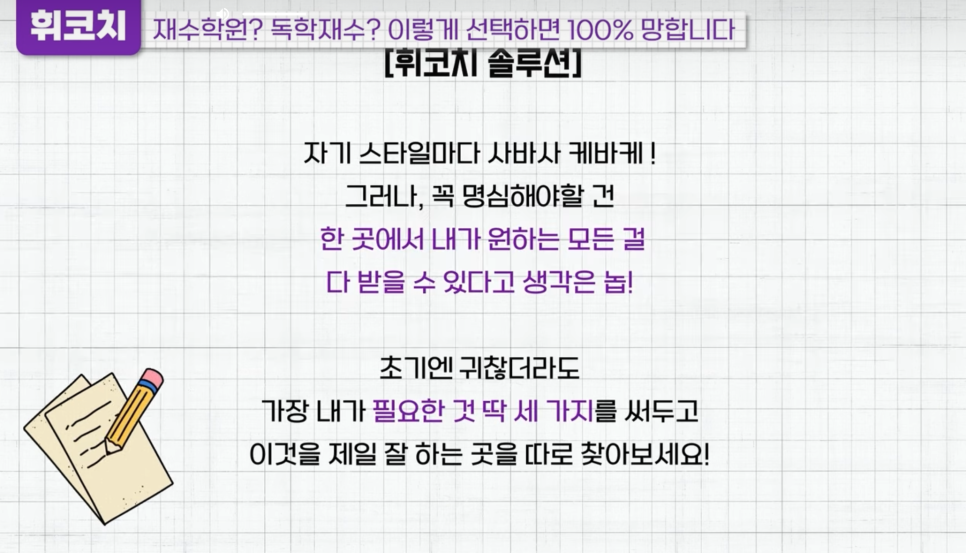 재수의 경험이 있기 때문에 찐 경험자로서 휘코치의공부팩폭에서
