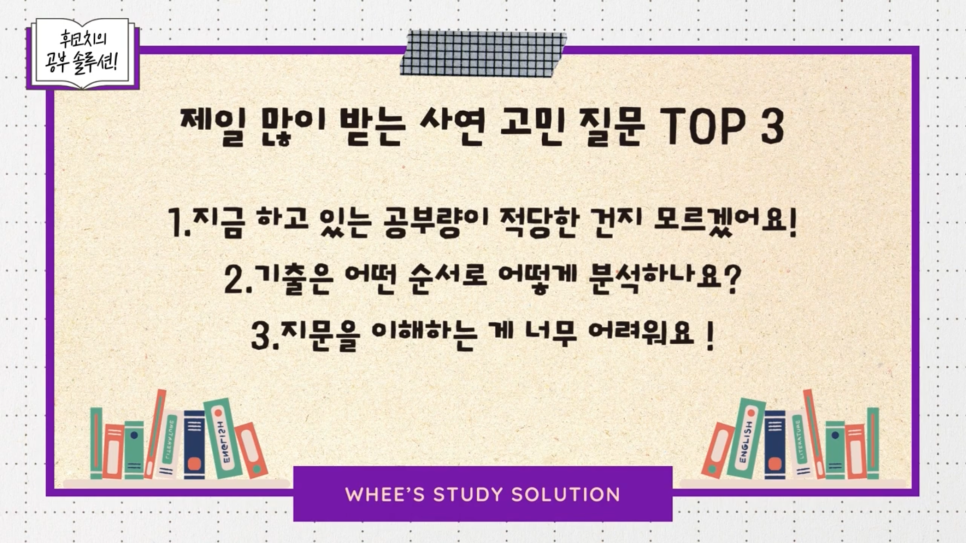 오늘은 휘코치의공부팩폭 유튜브에서 가장 많이 받은 사연을 참고해