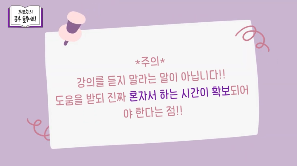 이전 영상에서도 인강을 듣는 시간은 순공 시간에서 제외를 하라고 말씀드렸어요!