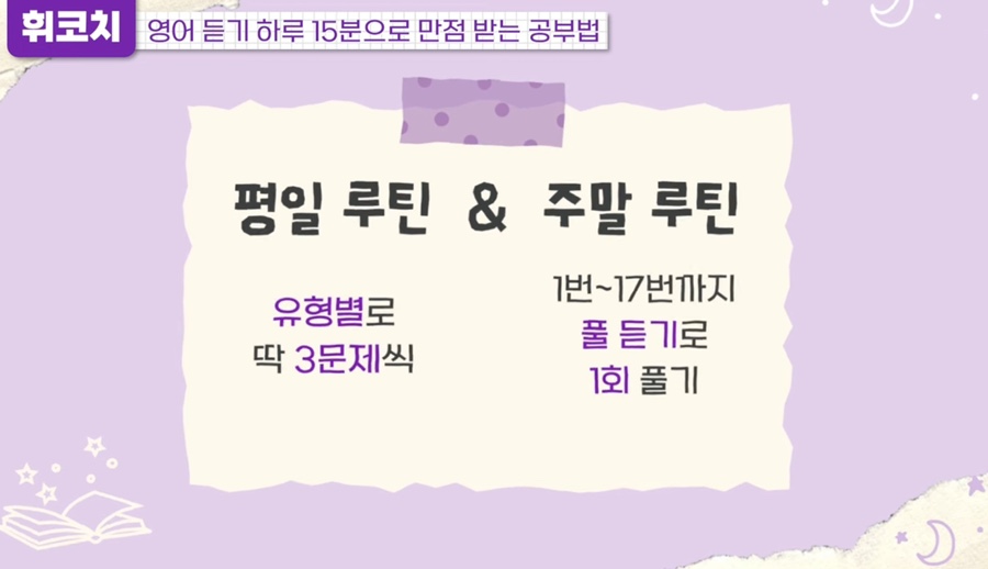 수능영어듣기 대비 평일 루틴은 유형별로 3문제씩 문제를 풀어보는 연습을 진행하면서