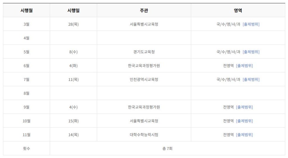6월 평가원 모의고사 일정