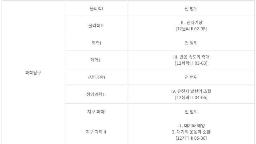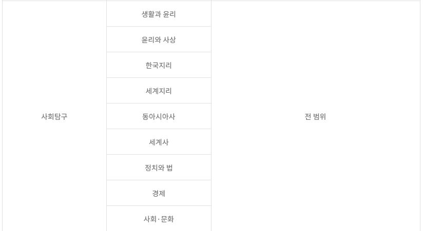 그리고 사회탐구, 과학탐구, 제2외국어 과목 모두