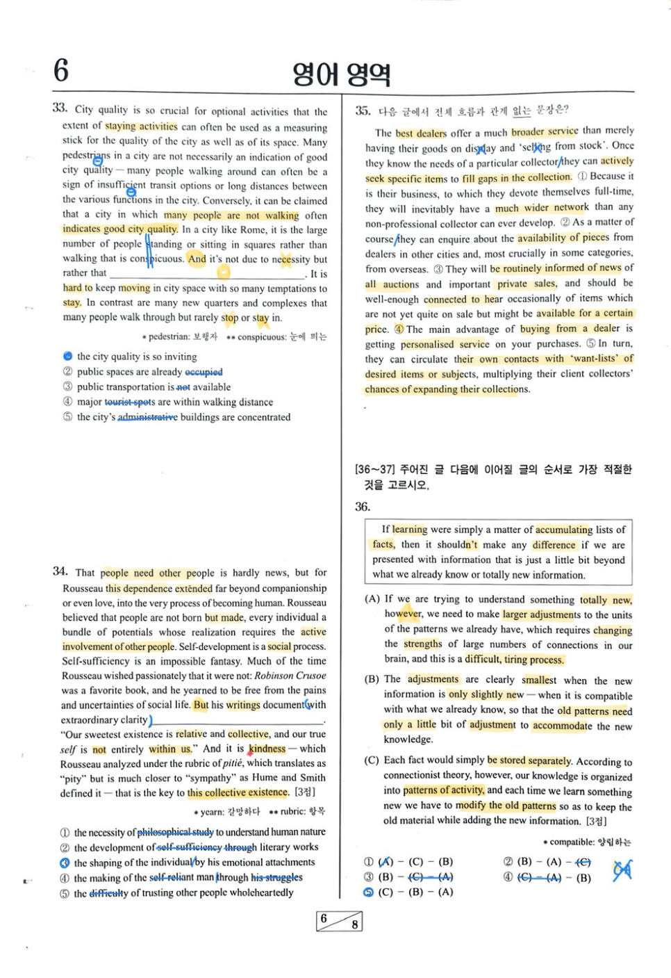 손글씨는 최대한 작성하는 대로 핵심 문항들을 올려놓겠습니다.