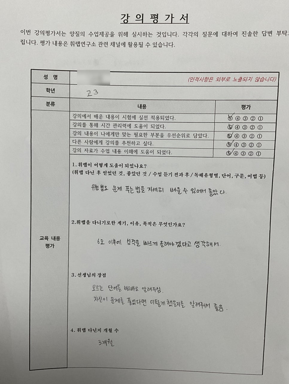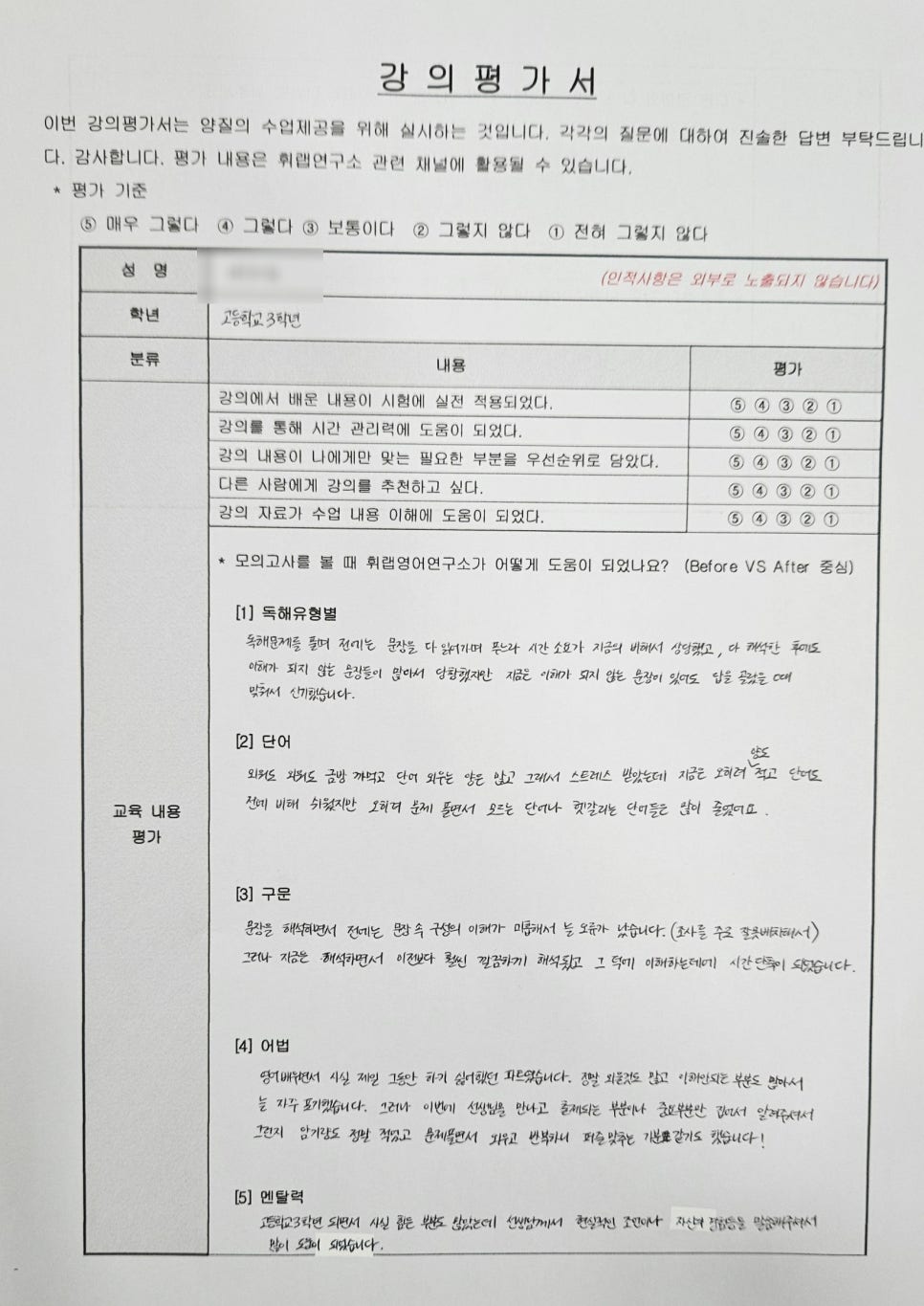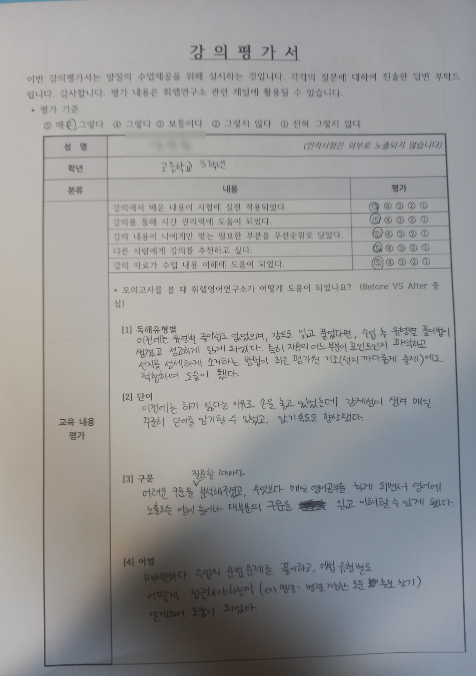 휘랩연구소 박재휘영어는 대치동 학군의 내신 영어, 수능 영어를