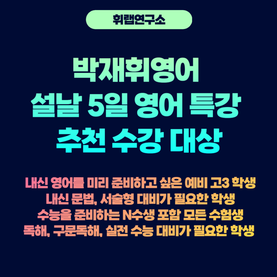 대치동 박재휘영어 휘랩영어연구소 설날 영어 특강 추천 수강 대상