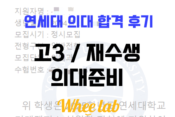 대치동 재수종합, 의대 입시 준비생을 위한 연세대 의대 합격생 후기 <휘랩연구소>