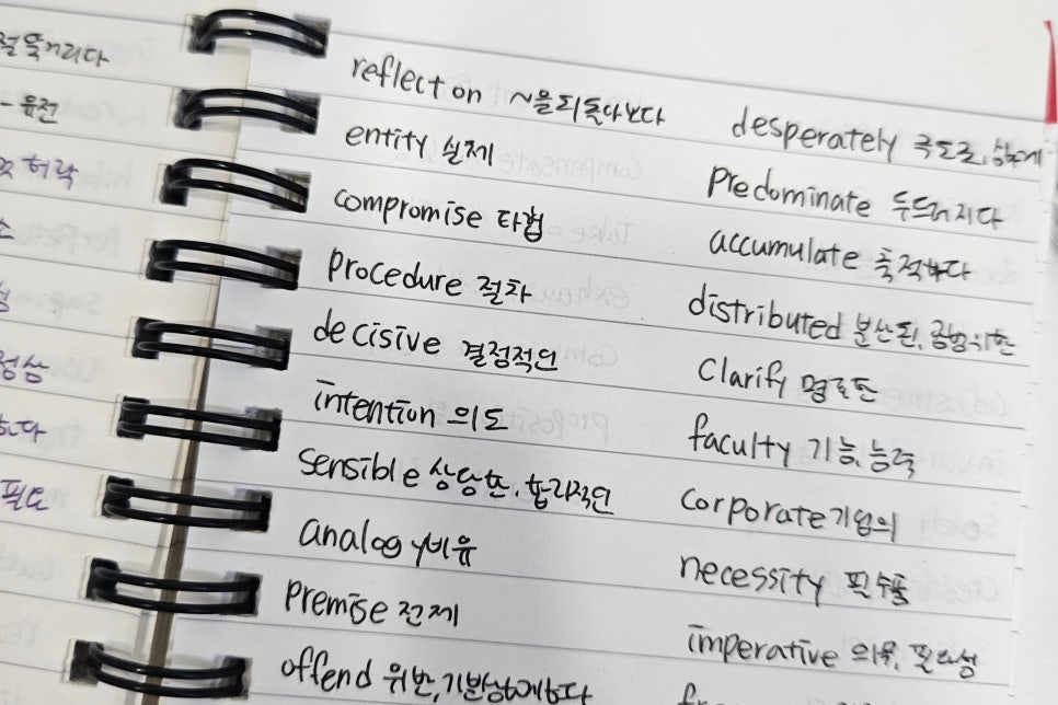 어휘나 문법이 부족한 경우라면 기출문제의 패턴을 분석하고 개념을 정리하는 것이 필요하고