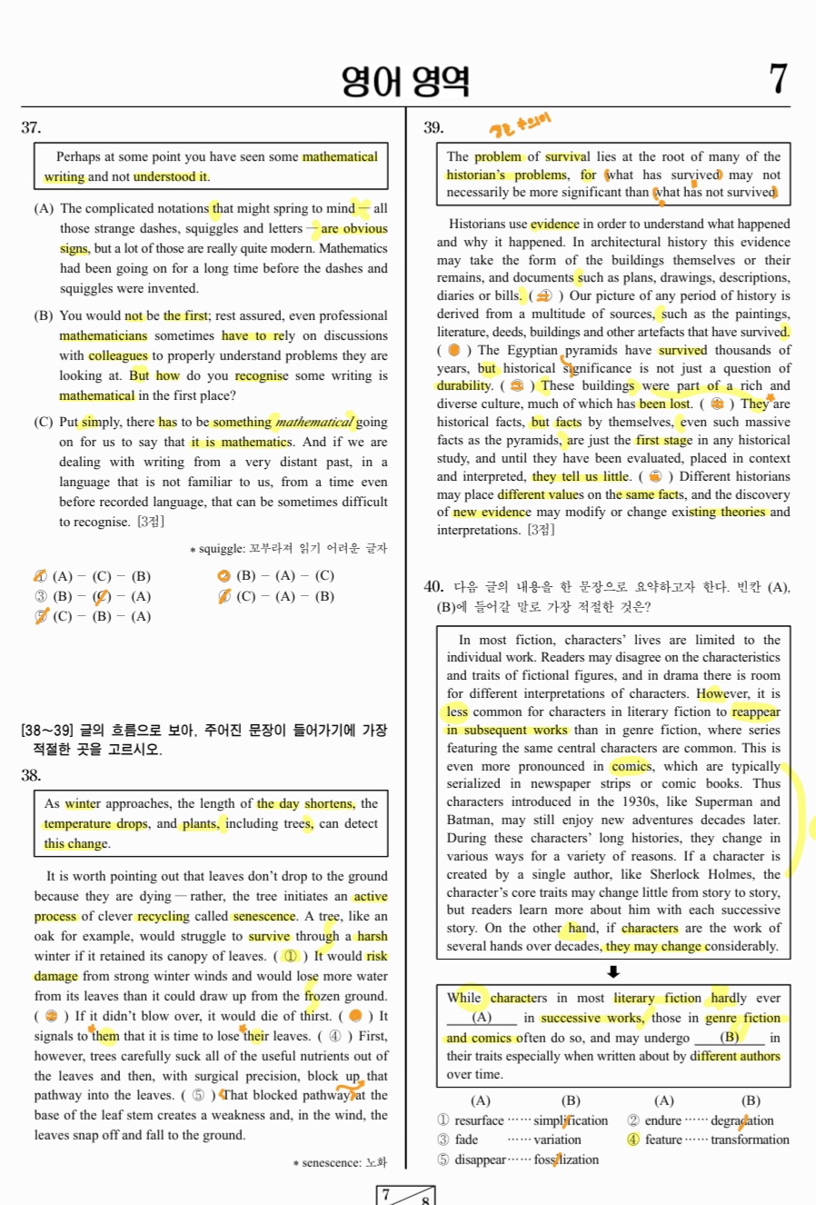 순차적으로 손글씨와 핵심 문항들을 정리해놓을 예정입니다.
