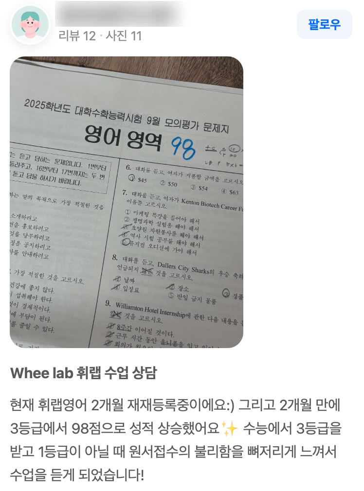 특히 영어 등급의 부족으로 인해서 재수를 선택하는 학생들이라면
