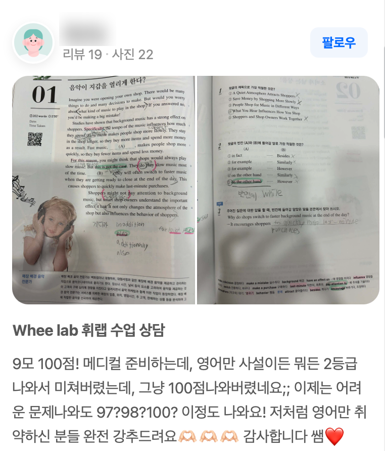 안녕하세요 대치동 재수정규반 맞춤 관리 추천 박재휘영어 휘랩연구소입니다 :)