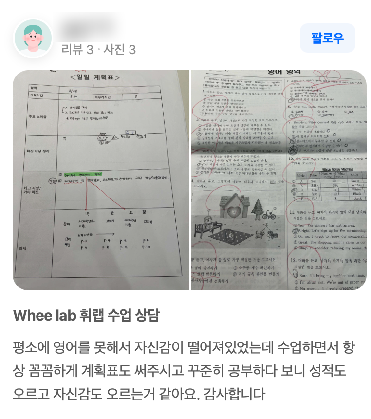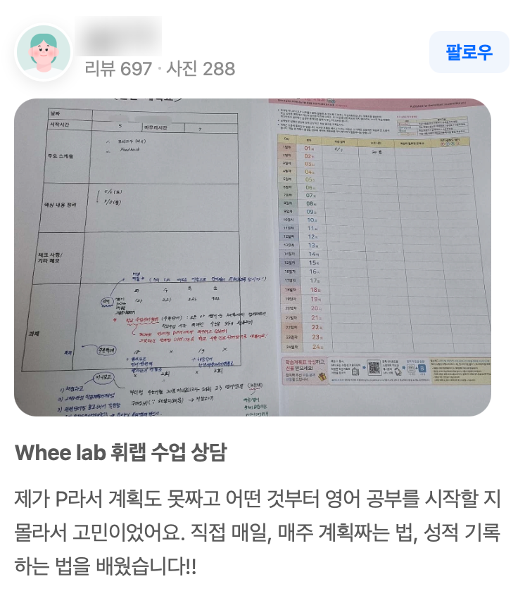 1:1 과외식의 밀착 케어가 진행되고 있고