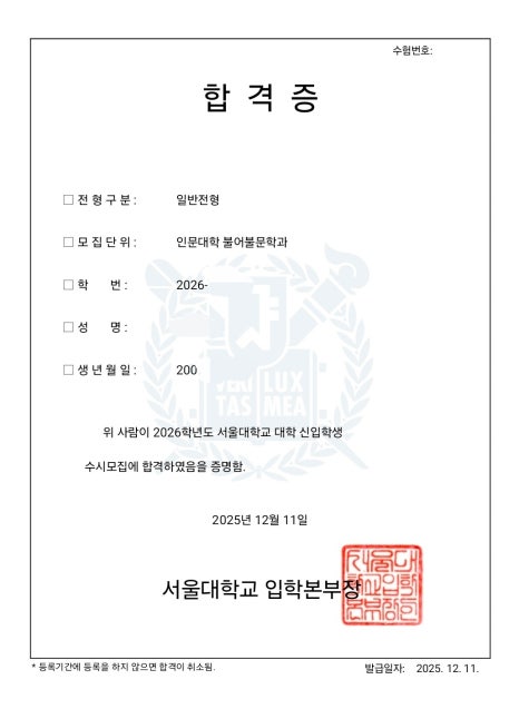 SKY부터 주요 서울권 대학까지 모두 골고루 합격자 배출에 성공하였습니다.